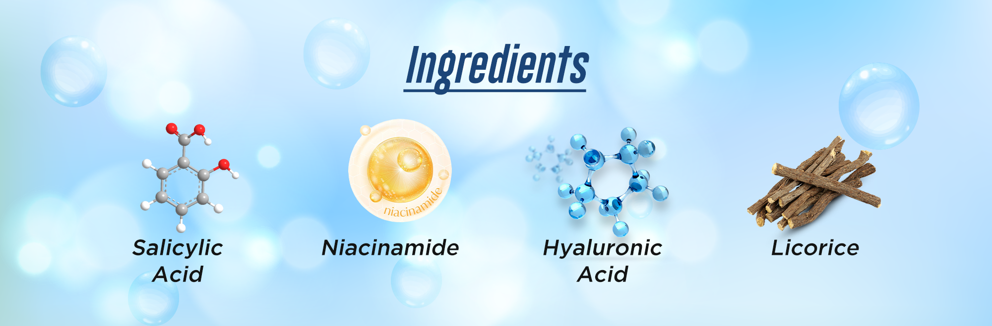 Salicylic Acid: A powerful beta-hydroxy acid (BHA) that gently exfoliates and unclogs pores, helping to prevent breakouts and promote clearer skin.
